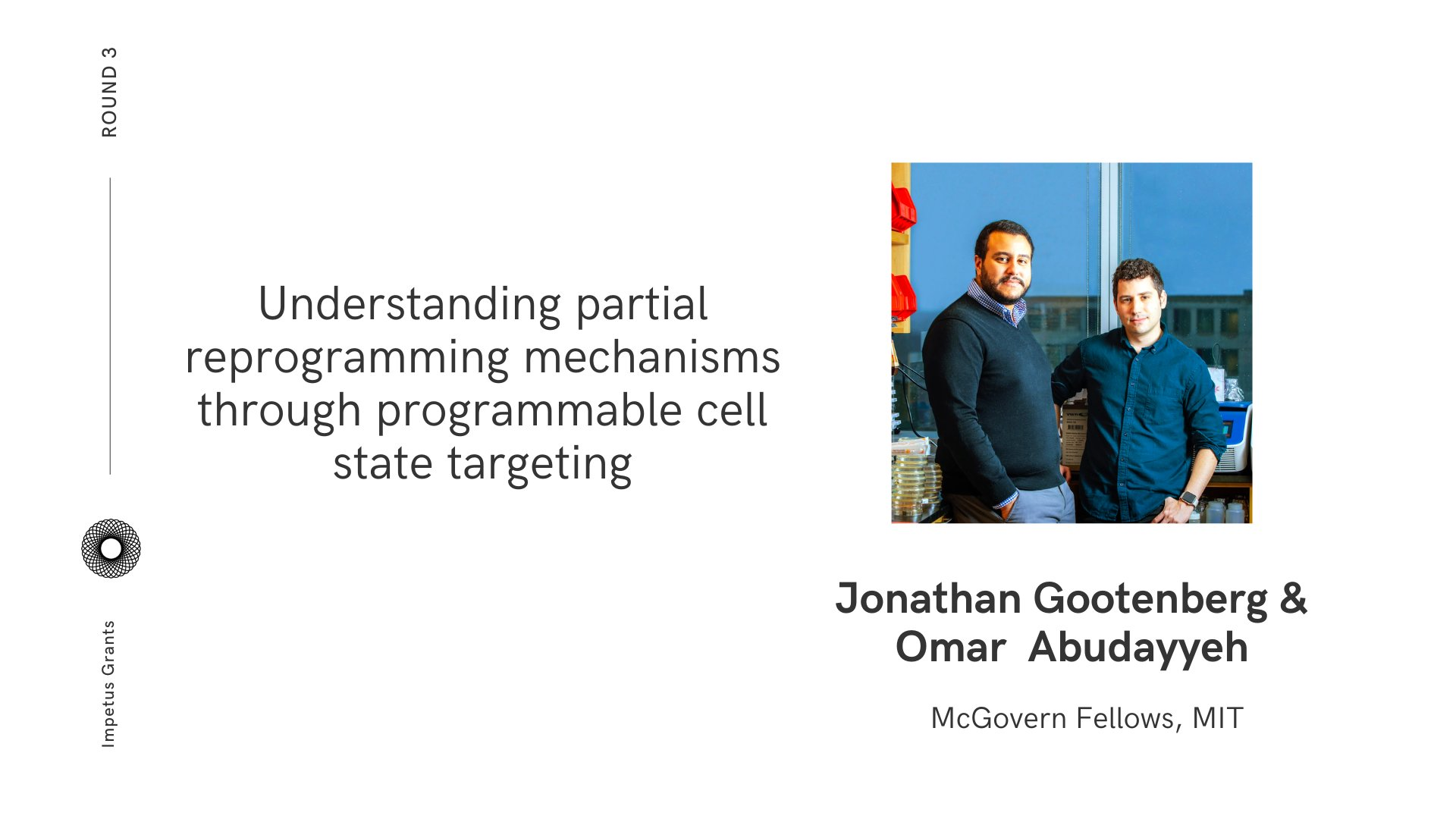 In August of 2023, we will launch a new round, together with Hevolution and Rosenkranz foundations, providing $5 Million in matching funding each. Thematically, the upcoming round will be open-ended, with a focus on high-risk high-reward kind of aging science. We are also looking to enable the following kind of research, among other things: