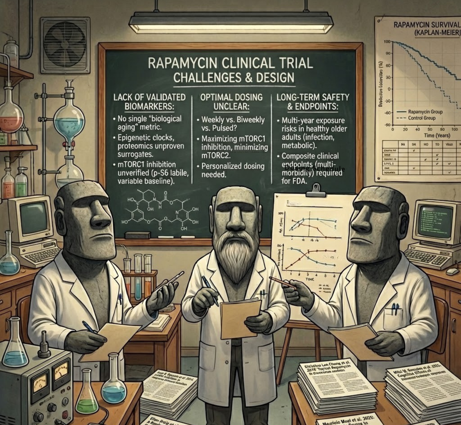 Early human trials of mTOR inhibitors hint at improved immune function, cardiovascular markers, and skin health with little side effects [3]. However, they also expose critical gaps: how to measure “aging” in trials, how to balance efficacy with safety in otherwise healthy people, and how to design studies that regulators and industry can get behind.